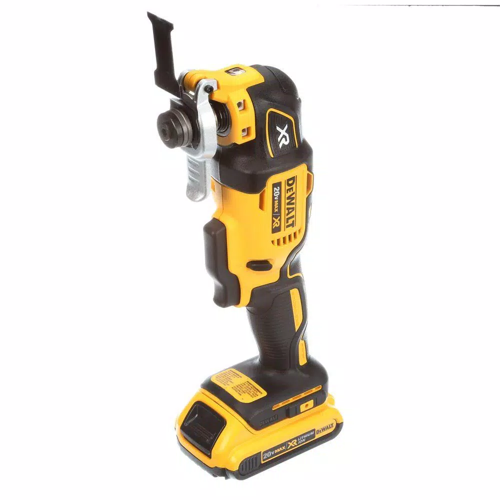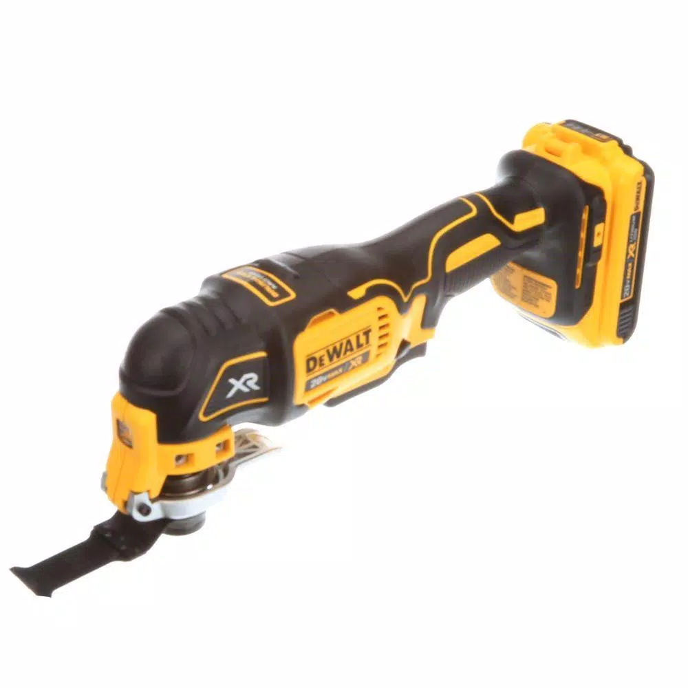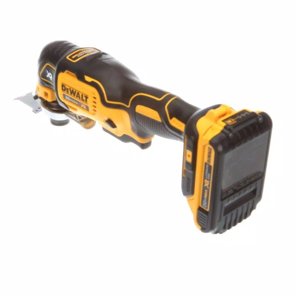 The DEWALT Cordless Oscillating Tool Kit is designed with a brushless motor that delivers up to 57% more run time over brushed. This oscillating tool features DEWALT’s Quick-Change Accessory System, which allows blades and attachments to be changed quickly without wrenches. This kit includes the oscillating tool, lithium-ion battery pack, fast charger DEWALT Oscillating Tool Guide System, wood with nails blade, sanding pad, (25) sheets of sanding paper, universal accessory adapter, contractor bag and an accessory storage box.