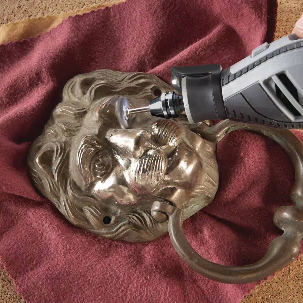 - Includes: 407 EZ drum mandrel, 408-1/2 in. 60-Grit sanding (3-pieces), 432 1/2 in. 120-Grit sanding (4-pieces), 445 1/2 in. 240-Grit sanding (3-pieces), EZ402 EZ lock mandrel, EZ411 EZ lock sanding disc – coarse (3-pieces), EZ412 EZ lock sanding disc – medium (3-pieces), EZ413 EZ lock sanding disc – fine (3-pieces), ez456 metal 1-1/2 in. Cut-Off Wheel (3-pieces), 107 1/8 in. engraving HS cutter, 191 1/8 in. high speed cutter, 561 spiral bit, 8193 5/8 in. aluminum oxide, 84922 3/16 in. silicon carbide, 932 3/8 in. aluminum oxide, 401 screw mandrel, 403 brush wheel, 414 felt polishing wheel (2-pieces), 421 polishing compound, 429 felt polishing wheel (2-pieces), 428 carbon brush wheel, 150 1/8 in. drill bit, 403 bristle brush, pivot light, shield, sanding / grinding guide, garden tool sharpener and cutting guide