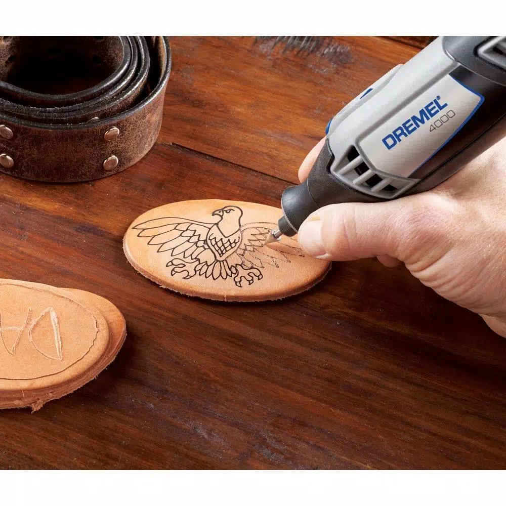 The Factory Reconditioned Dremel 4000 Series Rotary Tool Kit features a variable speed rotary tool that offers the highest performance and most versatility of any Dremel rotary tool. The increased strength of its motor plus electronic feedback circuitry enables consistent performance at all speed levels. Dremel 4000 can use all existing Dremel accessories and attachments plus high-performance attachments to complete the widest range of projects. A slim, ergonomic body provides a 360° grip zone for comfort and control in any grip position. Powerful, user-friendly and built to last, this handy little tool helps you complete a range of crafting, hobby and artisan projects.