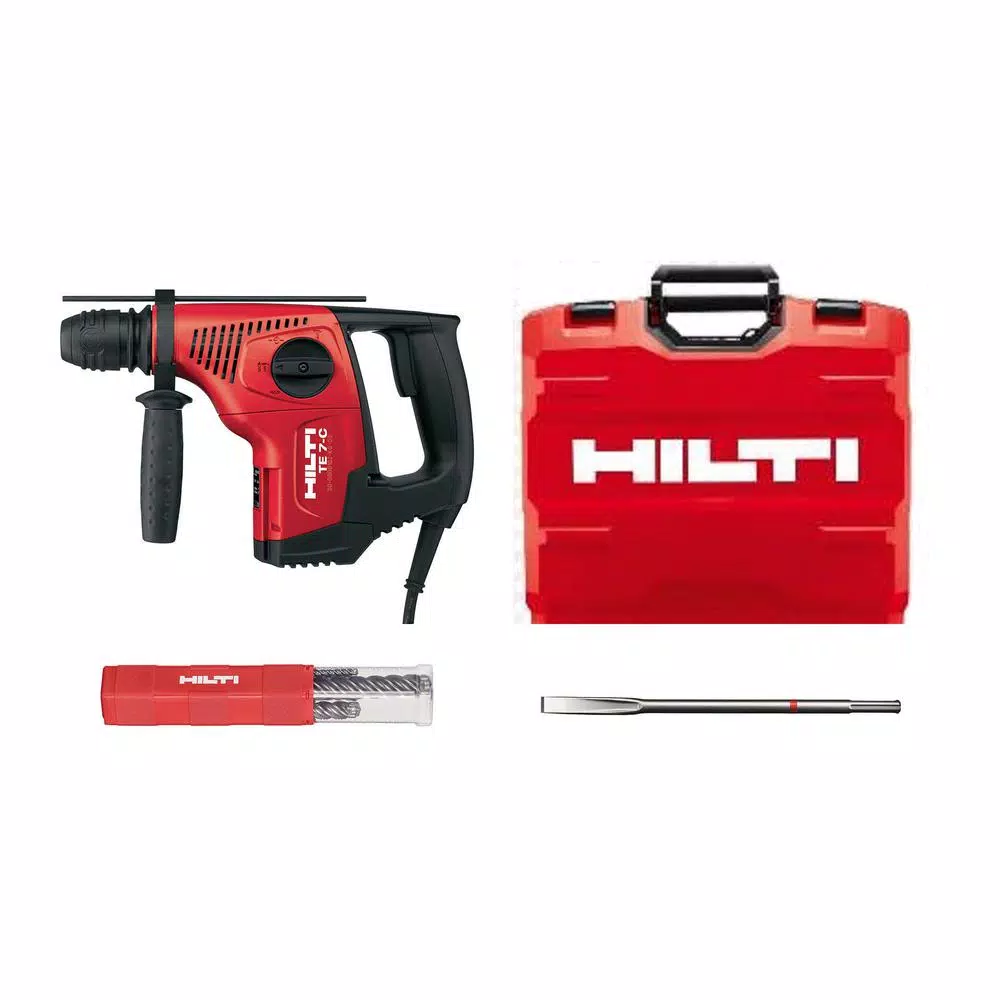 Powerful performance: Hilti’s TE 7-C Rotary Hammer Drill is the anchor hole expert with versatility. Perfect for drilling into concrete, stone and masonry using bits up to 1 in. Dia, the Hilti TE 7-C can also do light chiseling on concrete and masonry. Built for long periods of demanding drilling and light chiseling, the ergonomic design and impact power of this rugged rotary hammer drill make it a Pro tool. This rotary tool has 740 RPM and 4020 impacts per minute. Hammer drilling diameter range 3/16 in. to 1-1/8 in.