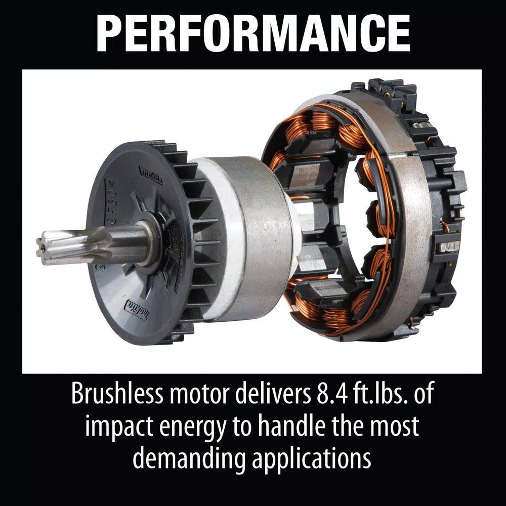 - Powerful BL brushless motor delivers 250 RPM to 500 RPM, 1,450 BPM to 2,900 BPM and 8.4 ft./lbs. of impact energy to handle the most demanding applications