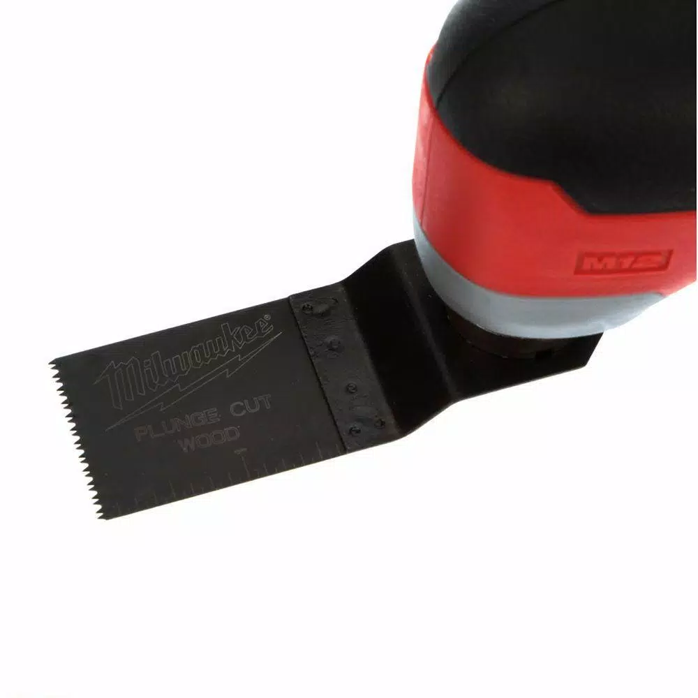 Our M12 Oscillating Multi-Tool has the versatility, power, and control to complete problematic job site applications. The multi-tool is ideal for remodelers, flooring contractors, maintenance repair technicians, and electricians. It performs cuts, grinds, sands, and scrapes at odd angles and in difficult work areas. The cordless multi-tool is powered by our M12 REDLITHIUM Battery (sold separately) providing up to 25% more runtime. The multi-tool can make flush or plunge cuts, remove grout, sand and tackle other awkward jobs. The MILWAUKEE Multi-Tool operates from 5,000 to 20,000 OPM, matching the speed to the application. An all-metal gear case provides added durability, while the over-molded, ergonomic handle allows for extra control. The included universal adapter allows you to use our M12 Multi-Tool with most competitor accessories for even greater versatility. The cordless tool comes with 5 assorted sanding sheets, a sanding pad, and a wood cutting blade.
