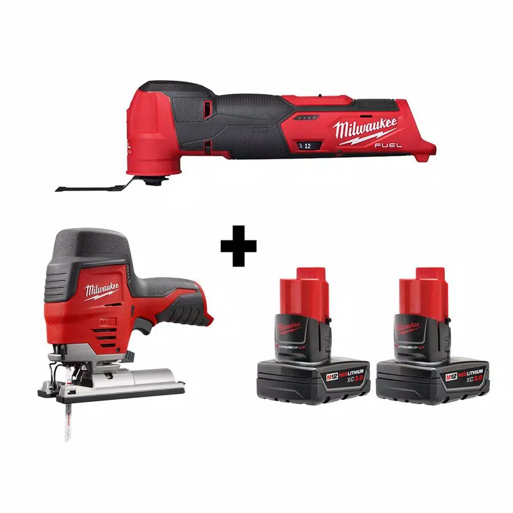 - Includes: one M12 FUEL 12-Volt lithium-ion cordless oscillating multi-tool, one M12 12-Volt lithium-ion cordless jig saw, two M12 12-Volt lithium-ion XC extended capacity 3.0 Ah batteries
