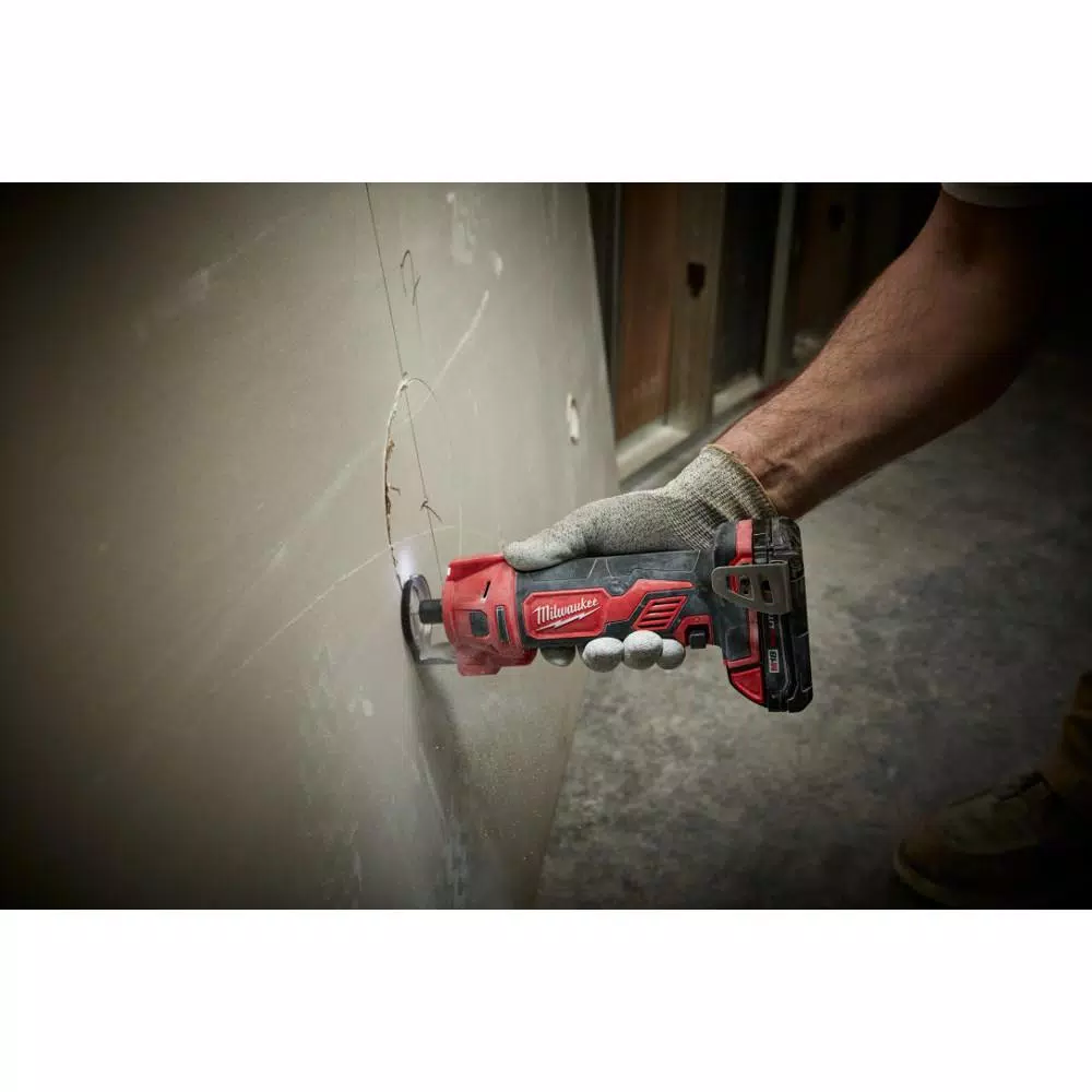 The M18 Cut Out Tool is the fastest, most compact tool in the market. With our 4-Pole motor this tool delivers up to 20% faster cuts than other tools in the market. The REDLINK Intelligence provides overload protection to defend against abusive situations. The REDLITHIUM battery provides up to 50 outlet boxes per charge. The best in class ergonomics allow for increased comfort during all day work.