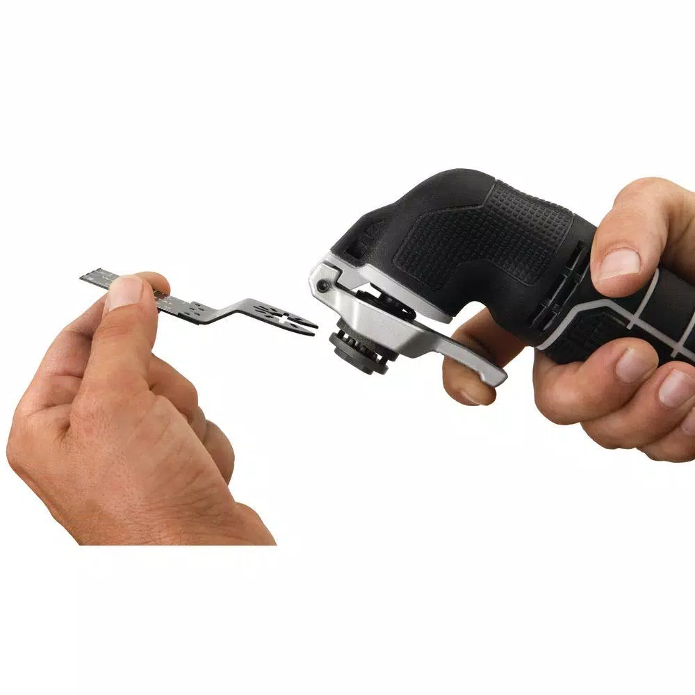 This 20-Volt MAX Cordless Oscillating Tool with 11-Piece Set comes with the accessories you need for a wide range of projects. 2-finger tool-free accessory changing makes going from one task to the next easy. A variable speed dial (8K-18K OPM) offers maximum control across a variety of applications. It has an integrated LED work light for better visibility in darkened work conditions and a 3-position overmolded grip improves comfort by reducing vibration. With 11 accessories and a storage box included, this set provides the ability to cut, sand, scrape and grind all in one tool.