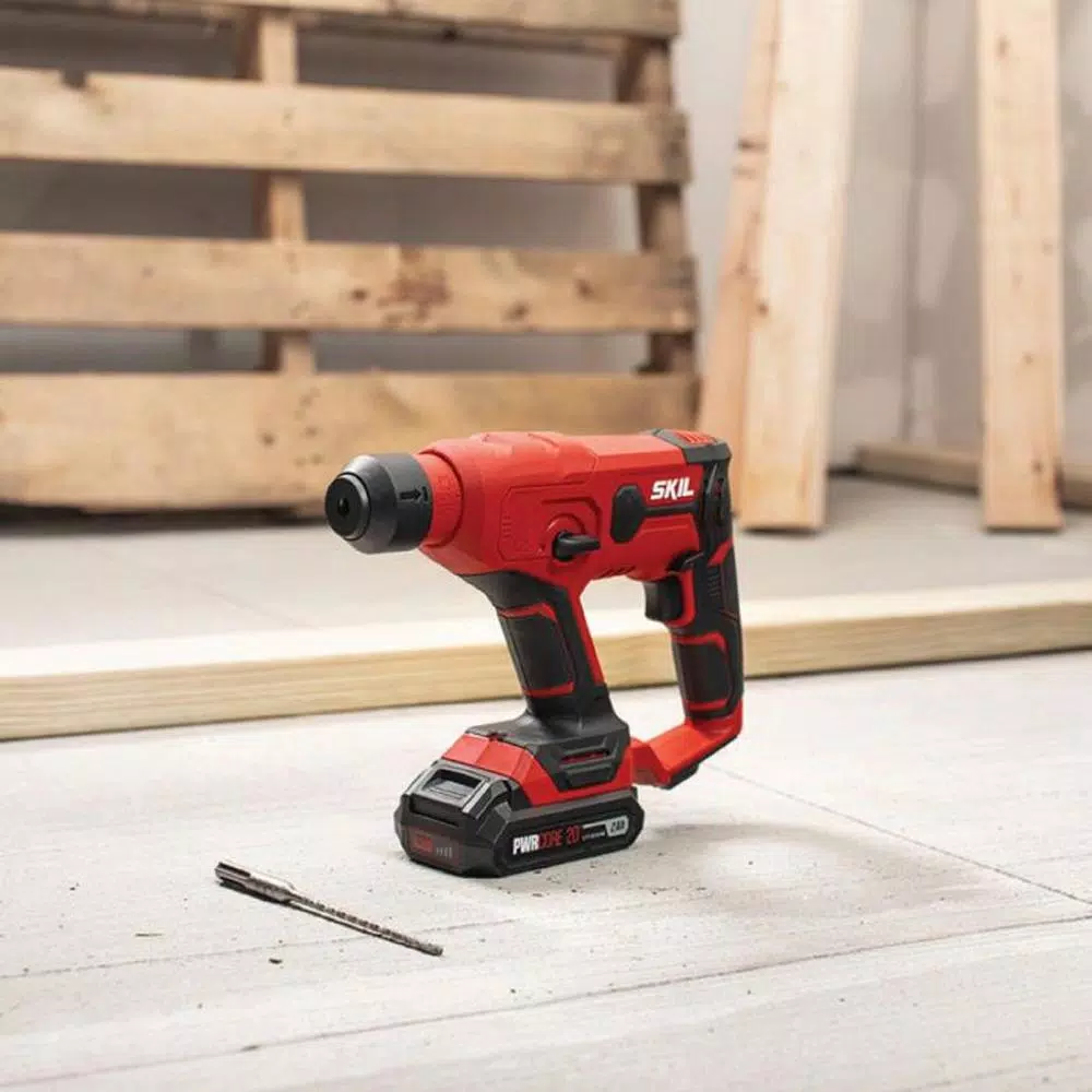 The Power Of 3 Tools in 1. The Skil 20-Volt Rotary Hammer gives you the function of a hammer drill, drill and screwdriver all in 1 easy-to-use tool. With its efficient and powerful hammering function, it can quickly hammer through tough materials like brick and stucco. Its also 1 of the top hammer drills for concrete. Includes a PWRCore 20-Volt 2.0 Ah Lithium Battery and 20-Volt Charger.