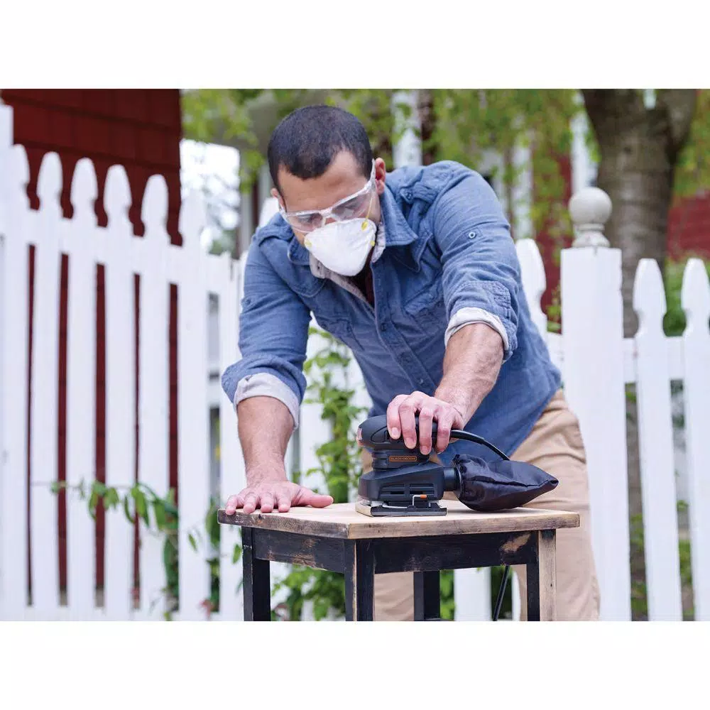 The BLACK+DECKER BDEQS15C is ideal for most finish sanding applications. This 1/4 sheet sander comes with a comfort grip handle design for extended use. The sealed switch protects internals and extends life of tool.