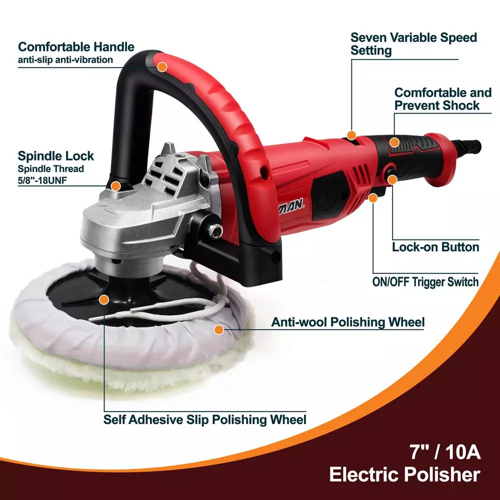 - Variable speed: Up to 7 speed and modes for precise polishing.