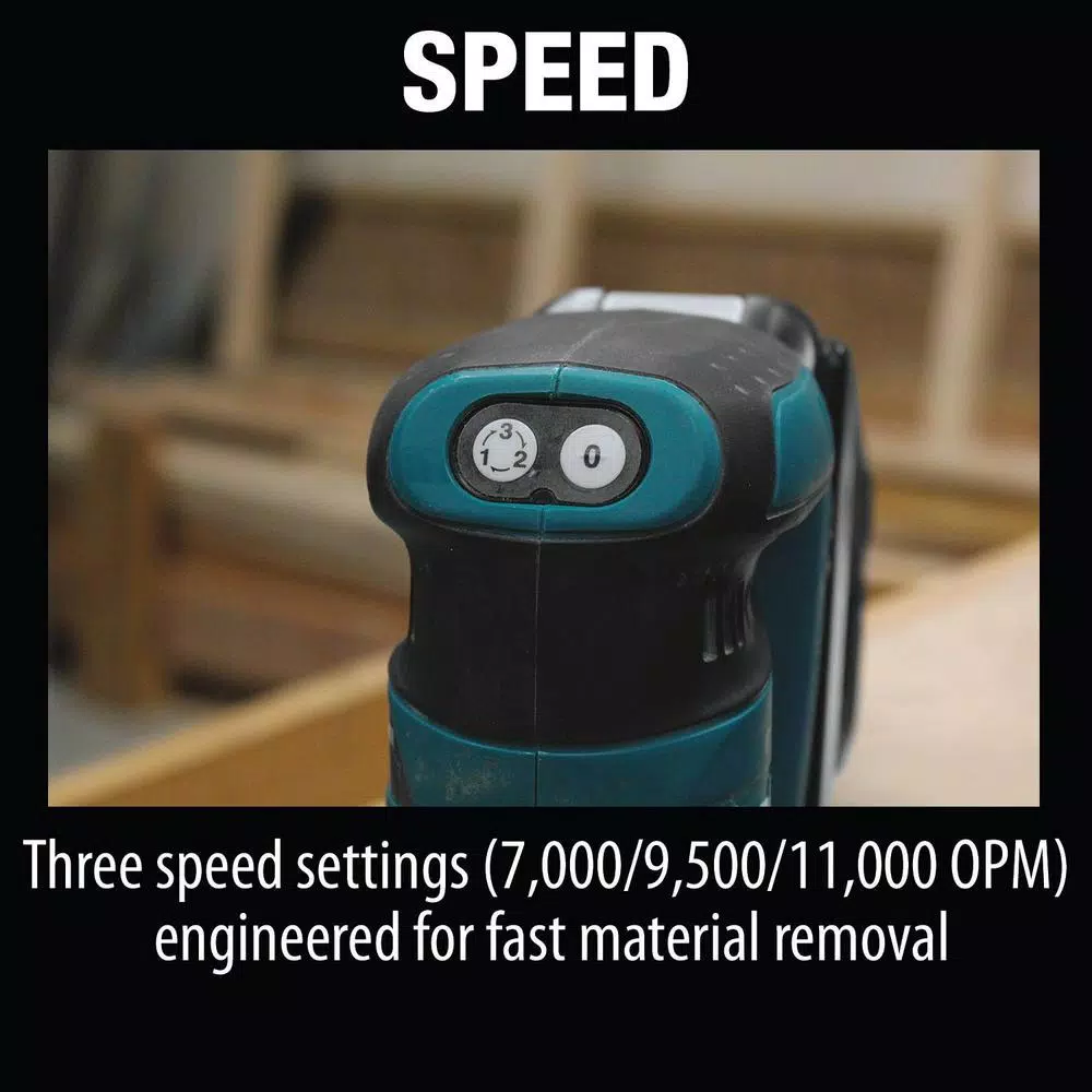 - 3-speed settings (7,000/9,500/11,000 OPM) engineered for fast material removal