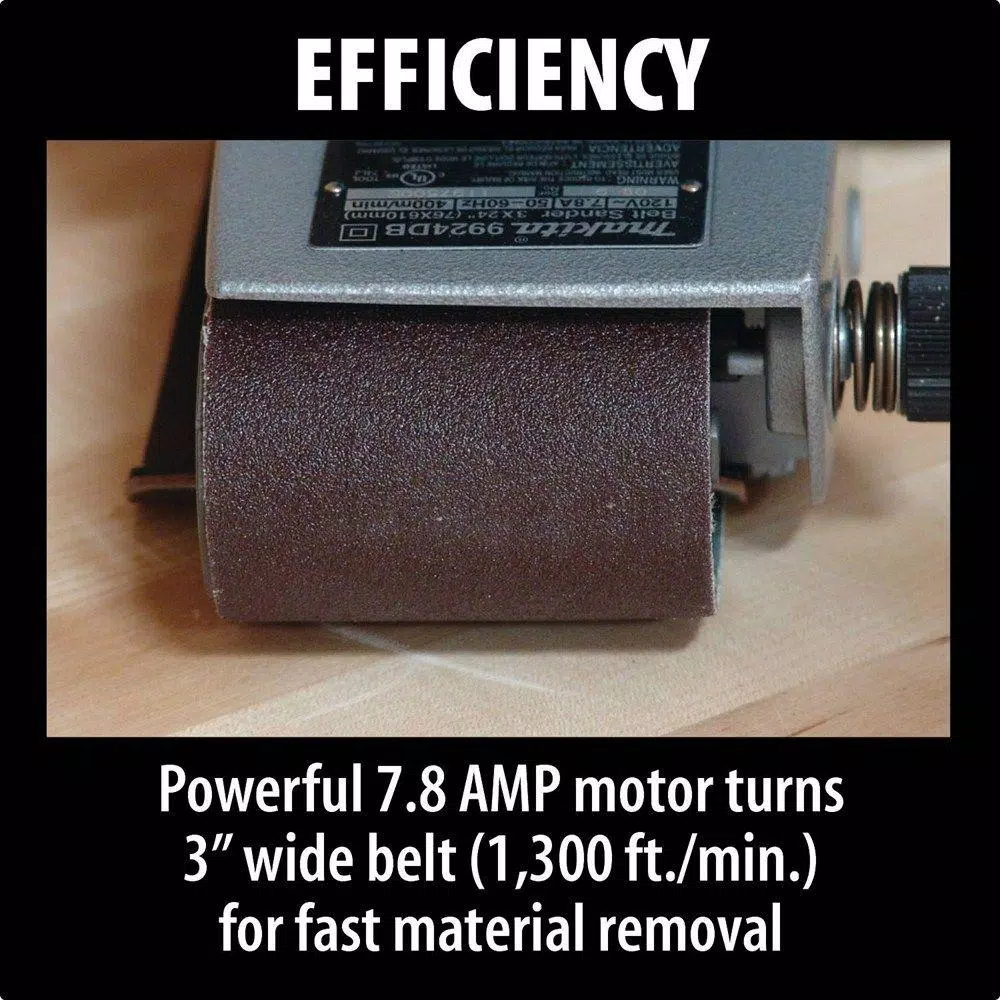 The Makita 3 in. x 24 in. Belt Sander combines power and speed with ease-of-use features for superior performance. Ideal for woodworkers, carpenters, furniture makers, floor installers, deck builders and general contractors, the powerful 7.8 Amp motor with electronic speed control maintains constant speed under load and allows fast material removal. Featuring outstanding dust collection, this sander has a replaceable wear plate for easy maintenance, an extra long cord for easy maneuverability and all-bearing construction for long-lasting reliable usage.