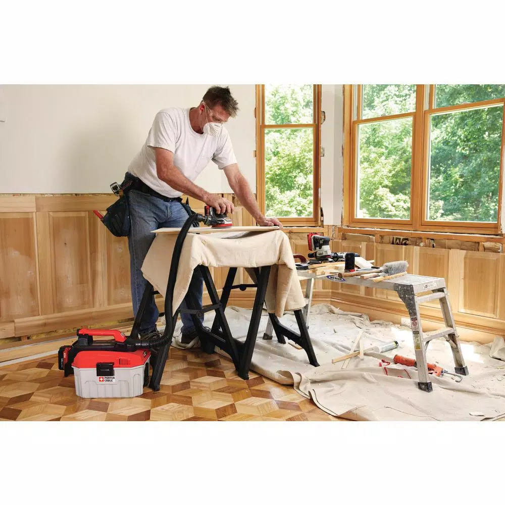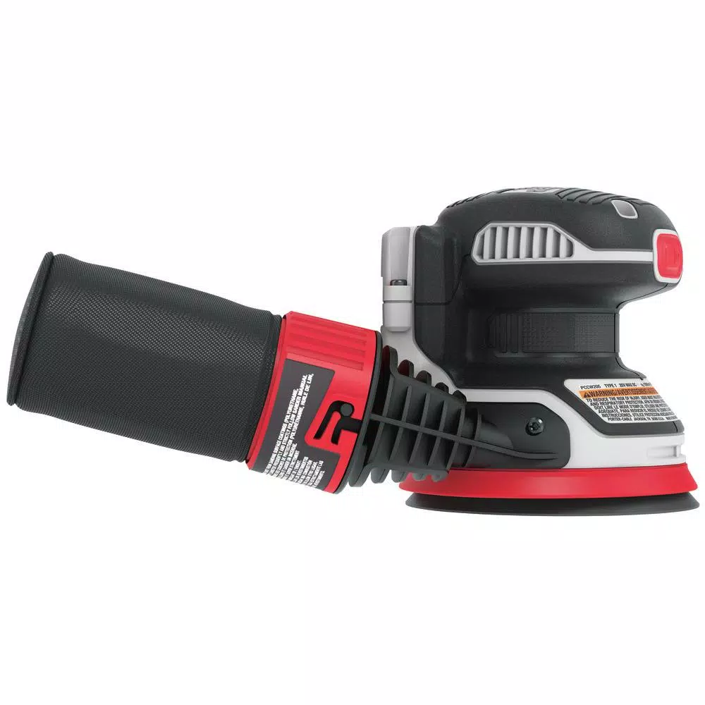 The Porter-Cable 20-Volt MAX Cordless Random Orbital Sander provides users with the ability to complete sanding projects without the hassle of a cord. The rubberized grip makes sanding more comfortable and is equipped to sand a variety of materials. A dust bag can be attached for convenient dust collection or removed for attachment to a 1-1/4 in. hose.