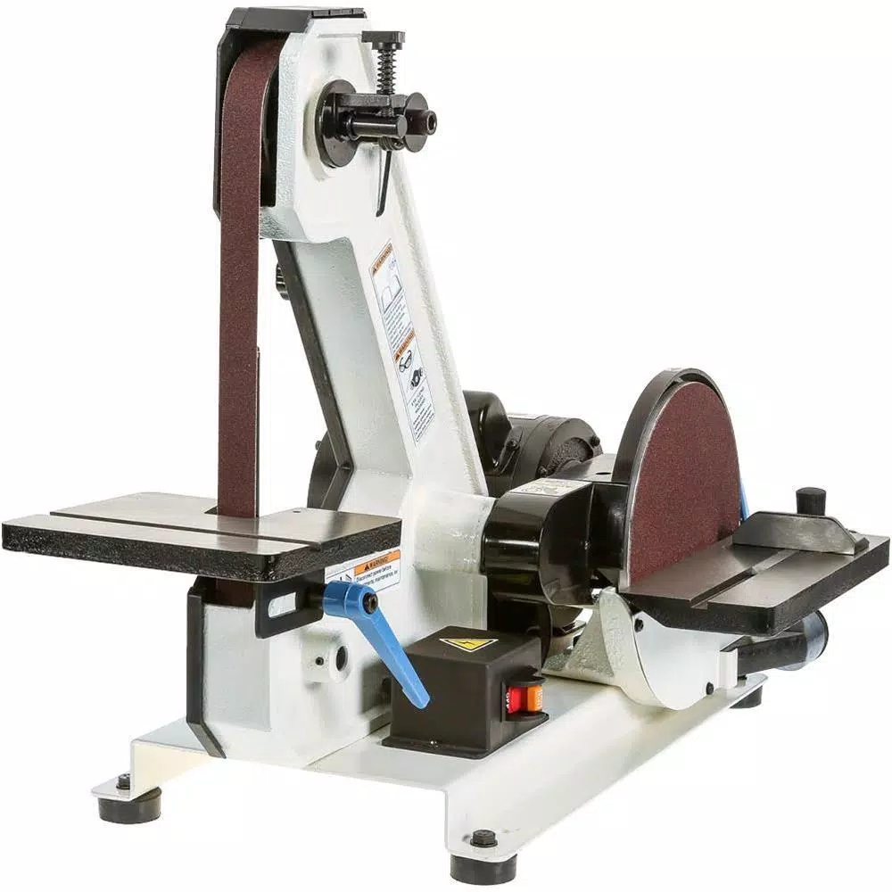 This Combo Belt/Disc Sander features 2 tilting cast-iron tables with miter slots, two 2 in. dust ports and the convenience of a single knob for belt tracking. Both tables tilt to 45 deg. for a variety of sanding and sharpening applications and the adjustable miter gauge ensures accurate angle settings. When it comes to versatility in a benchtop sander, this machine does it all.